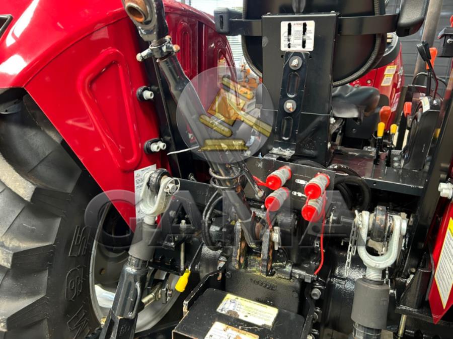 Comando hidráulico traseiro duplo de 4 saídas, sistema hidráulico de alta vazão com capacidade para 2.500 KG, trava do sistema hidráulico para transporte,